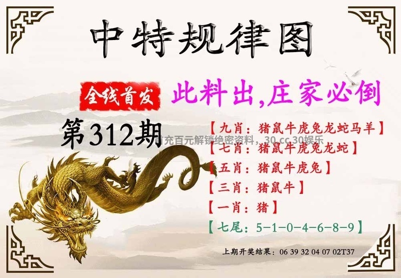 317期:九肖★虎狗鸡牛马猪龙蛇鼠★开:發00中