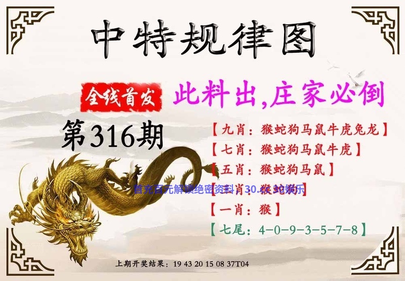 316期:九肖★狗鸡牛鼠猪羊猴兔★开:马24中